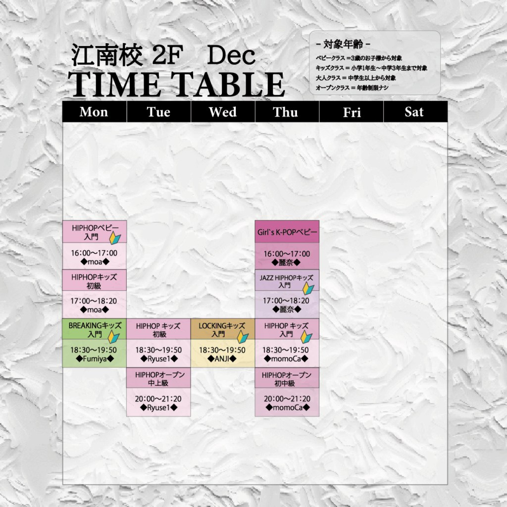 11月24日(月)~11月29日(土)の6日間、江南校2Fのレッスンが何度受けても無料です。